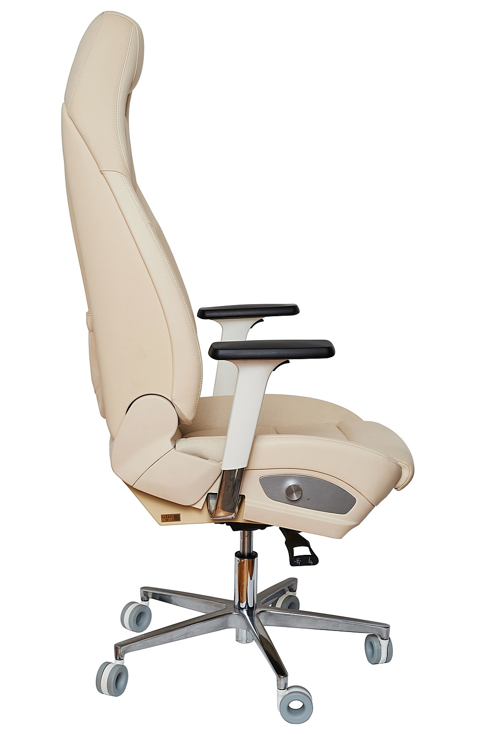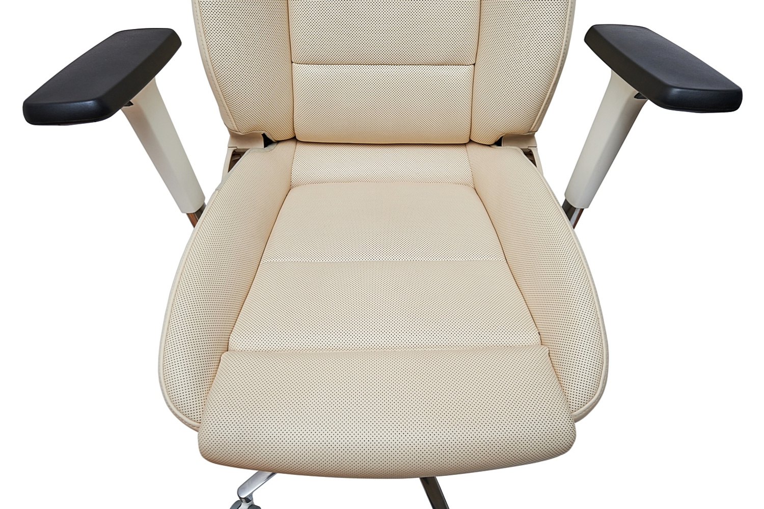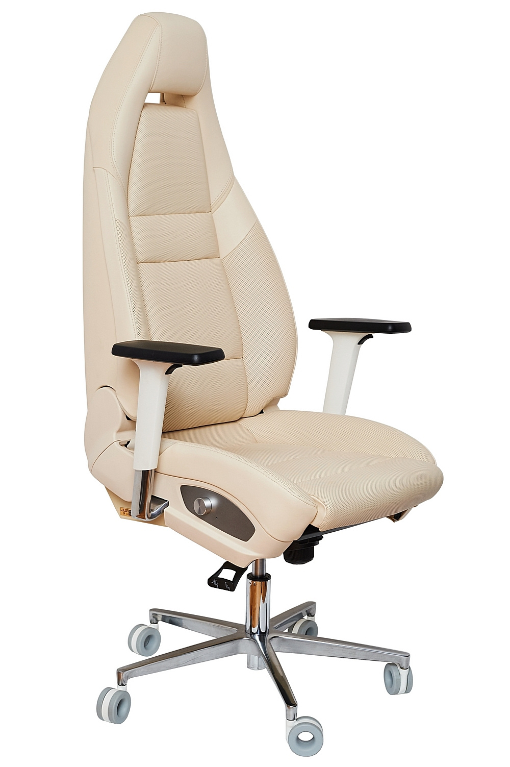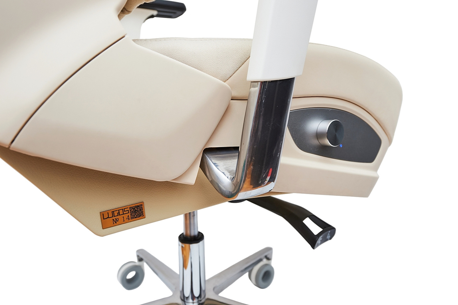 Original leather seat from a Porsche Panamera converted into an office chair. Built-in 14Ah gel batteries allow you to control selected functions of the chair: