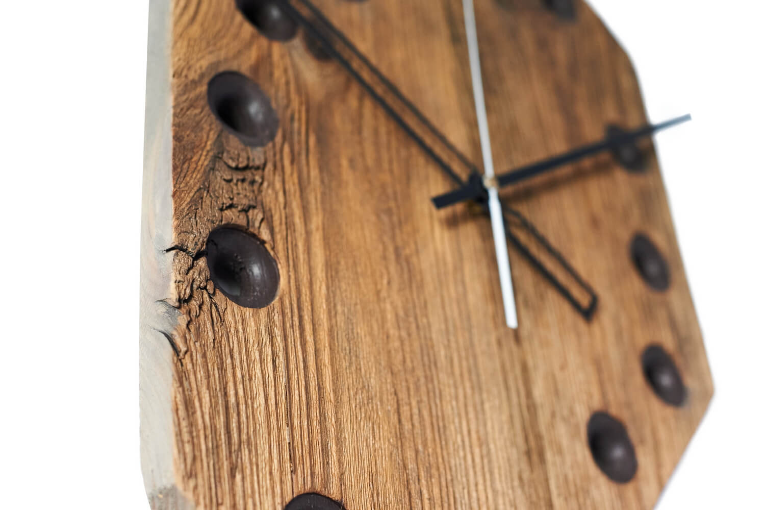 Made from old pine wood that has been exposed for 50 years to the weather in a temperate zone, a warm, transitional climate. The wood has been abraded, highlighting its structure, and protected with an ecological varnish. A clock with a smooth mechanism. A beautifully imperfect piece of interior design that will happily work, even when you stop.